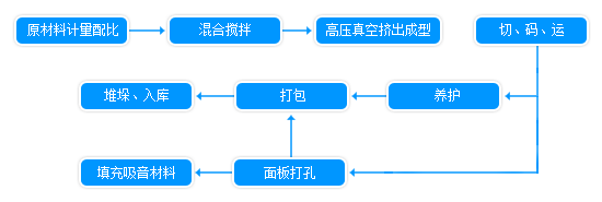 ![]() | (4)、養(yǎng)護:擠壓出的成型板通過輥道運送至養(yǎng)護窯中,在常溫下養(yǎng)護,使其逐漸硬化。 |